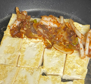 양념을 두부 위로 얹어 준다.