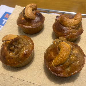 위에 얹은 캐슈넛 반죽에 부숴넣은 캐슈넛이