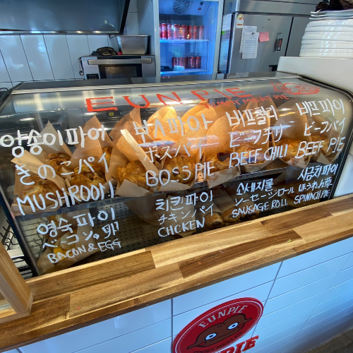 나는 매장 앞에서 쫀득빵 씹다가