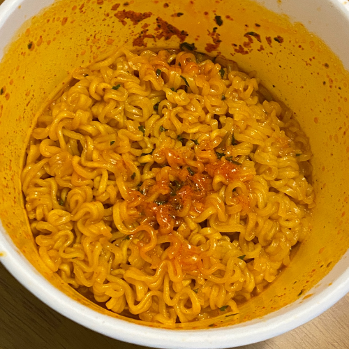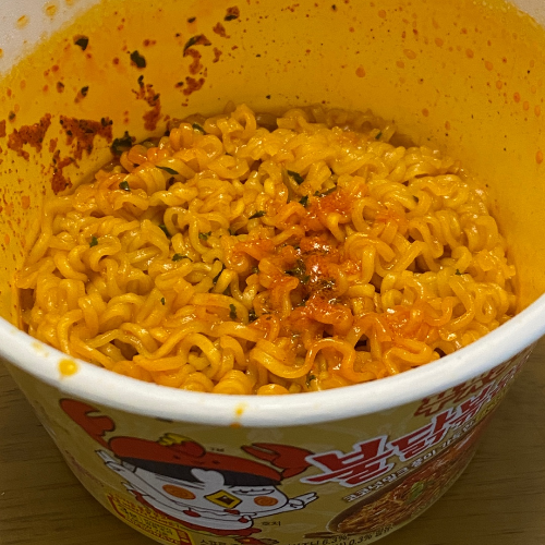 조리가 완료된 푸팟퐁커리 불닭볶음면
