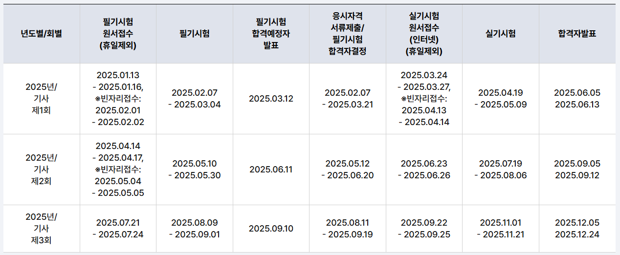 2025 기사 시험 일정