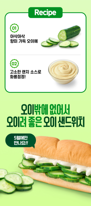 [서브웨이] 5월 한정판, 5이 + 52 + 5E + 오이 샌드위치! / 내돈내산 솔직후기 본문