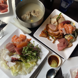 결혼식 이슈 ( 연어 + 참치 + 농어 + 양상추 샐러드 + 차슈 + 닭고기 등) 단백질 위주 식단