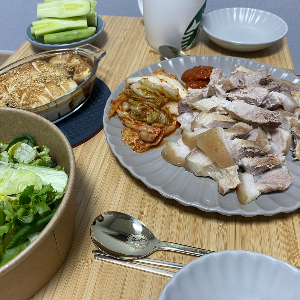 앞다리살 수육 + 리코타치즈 샐러드 + 순두부 구이 + 오이