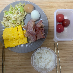 + 양배추 라페 + 베이컨 한장 + 토마토 하나