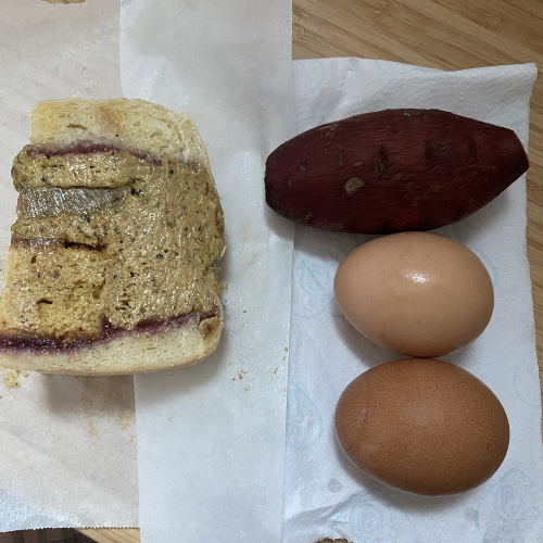 + 찐 고구마 1 개 + 찐 계란 2 개