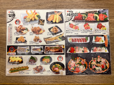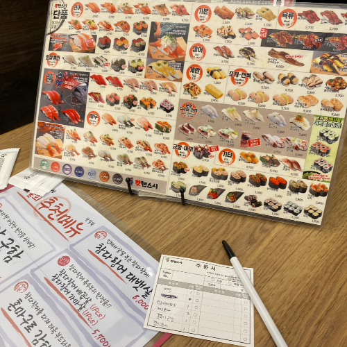 다찌석에 앉아있어도 주문서를 작성하여 주문이 가능하다.
