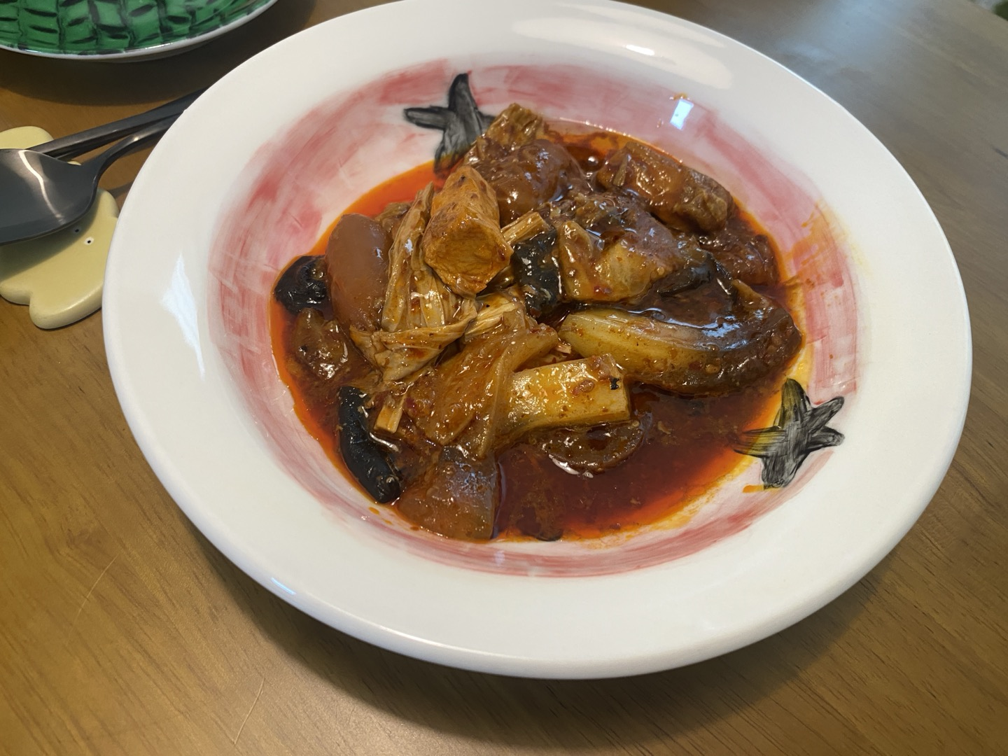 조리하고 나면 마라샹궈 기름이 조금 나오고