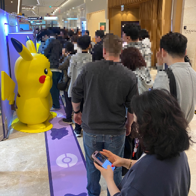 메타몽 팬클럽 하우스에 줄 서서 내부 구경함.